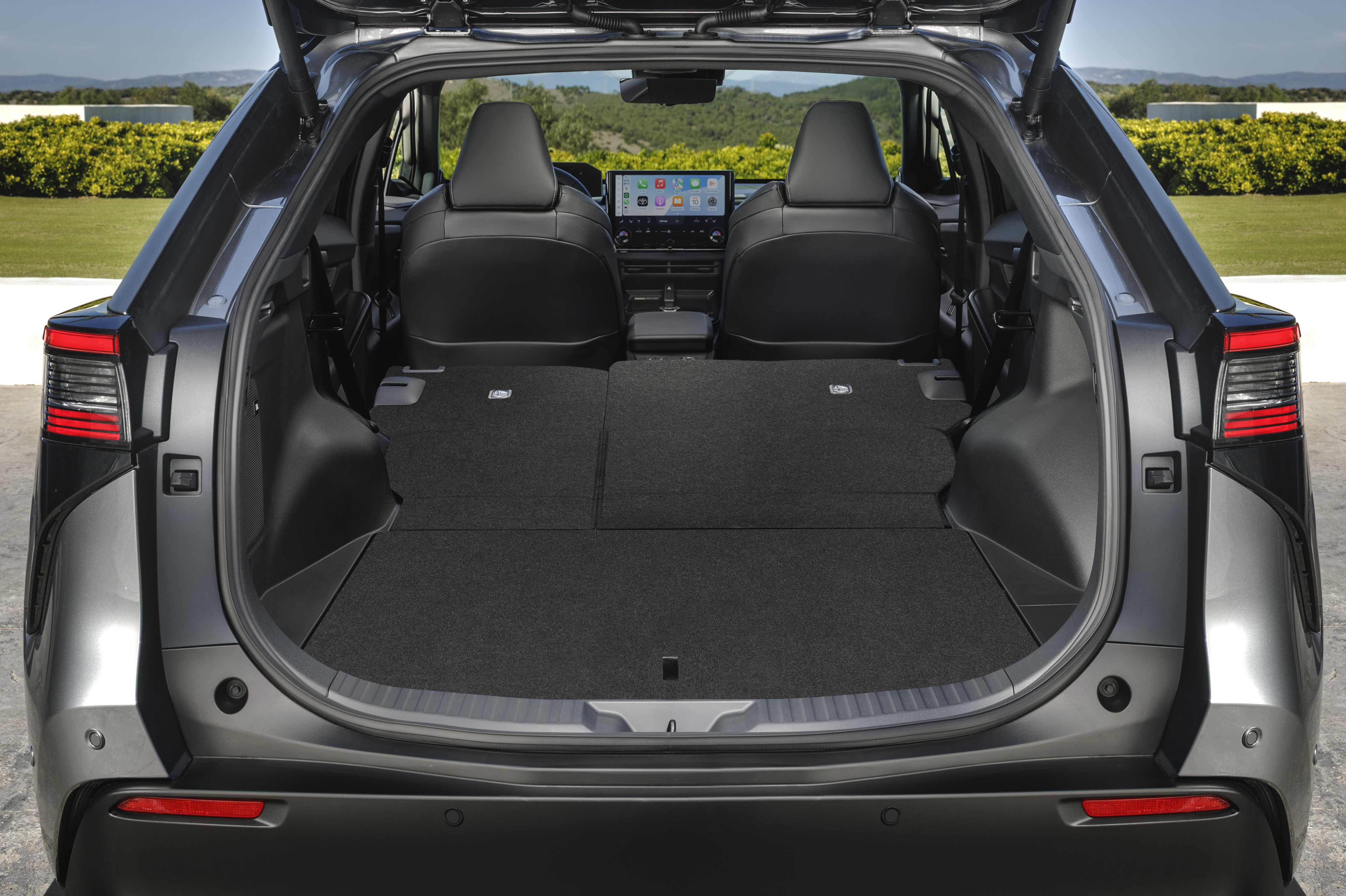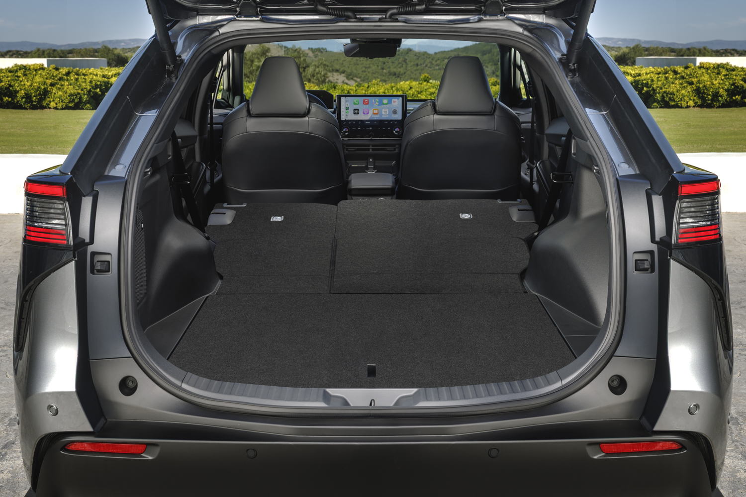 In de bZ4X maakt het platform een lange wielbasis van 2.850 mm mogelijk – 160 mm langer dan de huidige Toyota RAV4. Het resultaat is heel veel binnenruimte – zowel in de passagiers- als in de laadruimte. Met name de achterpassagiers genieten van een koppelafstand van één meter en een vlakke vloer, met beenruimte die kan wedijveren met grotere auto's.