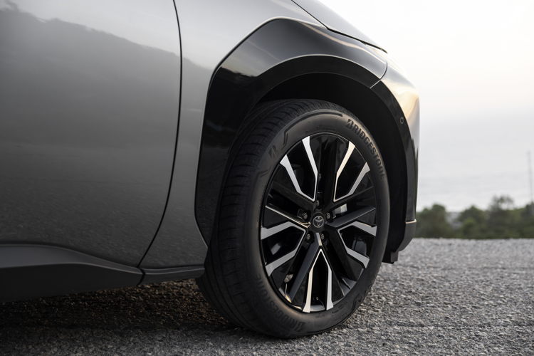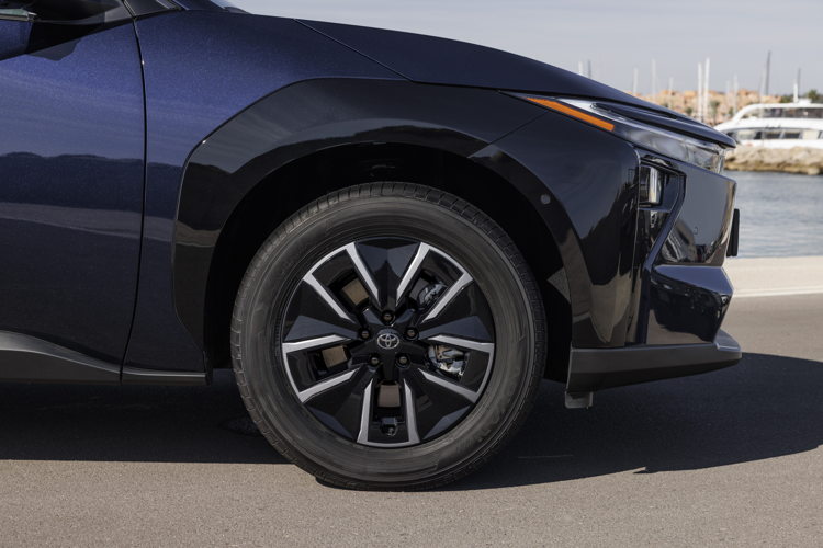 De strakke styling van de bZ4X wordt nog versterkt door een ruime keuze aan lakkleuren, in (afhankelijk van de uitvoering) een monotone of contrasterende tweekleurige afwerking. De nieuw ontworpen 18-inch lichtmetalen velgen hebben aero-efficiënte afdekkingen, volledig gemaakt uit kunsthars. De nieuwe 20-inch velgen zijn volledig uit aluminium met een contrasterende zwarte en heldere machinale afwerking en sierelementen uit hars die de luchtstroom helpen beheren.