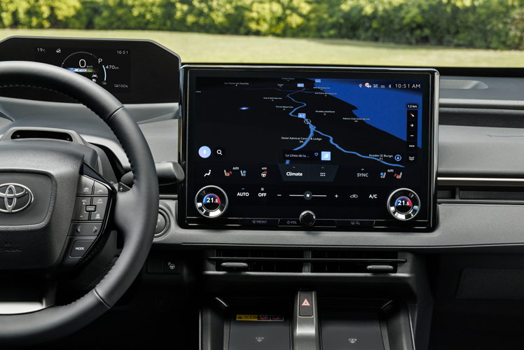De bZ4X beschikt over een BEV-navigatiefunctie die automatisch een route voorstelt met aanbevolen handige oplaadstations, op basis van het oplaadniveau van de batterij en het resterende rijbereik. De functie is dynamisch, zodat aanbevelingen in realtime worden bijgewerkt op basis van het daadwerkelijke energieverbruik van de auto tijdens de rit.